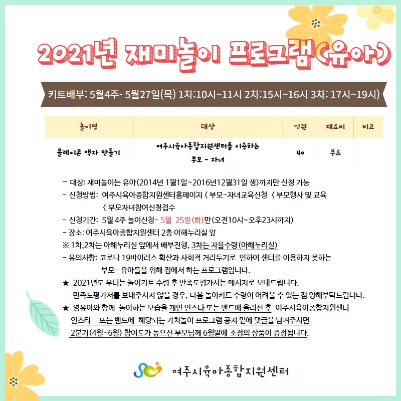 (ºñ´ë¸é) 2021³â 5¿ù4ÁÖ Àç¹Ì³îÀÌ(À¯¾Æ) ÇÁ·Î±×·¥ - Ç÷¹ÀÌÄÜ ¾×ÀÚ¸¸µé±â(10½Ã~11½Ã)