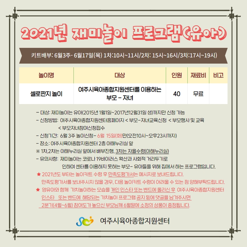 (ºñ´ë¸é) 2021³â 6¿ù3ÁÖ Àç¹Ì³îÀÌ(À¯¾Æ) ÇÁ·Î±×·¥ - ¼¿·ÎÆÇÁö ³îÀÌ(10½Ã~11½Ã)