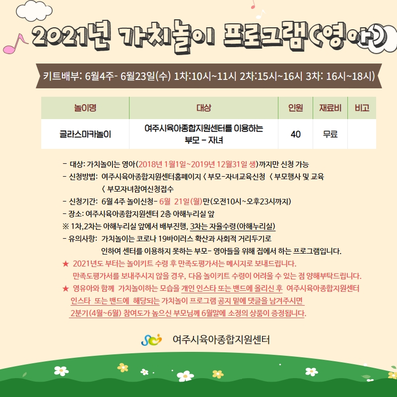 ½Å û : ¿©ÁÖ½ÃÀ°¾ÆÁ¾ÇÕÁö¿ø¼¾ÅÍ È¨ÆäÀÌÁö Á¢¼ö ½Åû±â°£ : 2020³â 6¿ù 21ÀÏ ¿ÀÀü 10:00 ~ ¼±Âø¼øÁ¢¼ö(20¸í)¡Ø ½Åû°¡´ÉÇÑ »ý³â¿ùÀÏÀº: 2018³â 1¿ù1ÀÏ~ 2019³â 12¿ù31ÀÏ