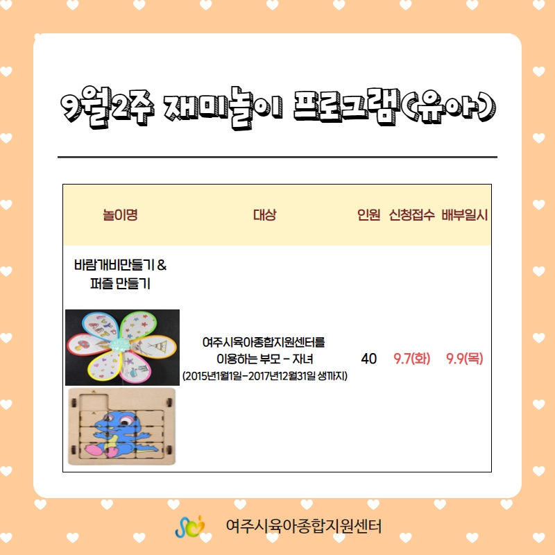 º» Àç¹Ì³îÀÌ ¹èºÎ´Â 9¿ù 9ÀÏ¿¡ ¿©ÁÖ½ÃÀ°¾ÆÁ¾ÇÕÁö¿ø¼¾ÅÍ 2Ãþ ¾ÆÇØ´©¸®½Ç ¾Õ¿¡¼­ ¹èºÎÇØ µå¸³´Ï´Ù.