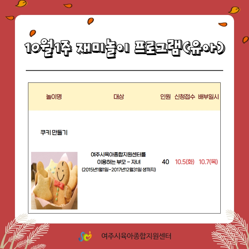 | (ºñ´ë¸é) 2021³â 10¿ù1ÁÖ Àç¹Ì³îÀÌ(À¯¾Æ) ÇÁ·Î±×·¥ - ÄíŰ ¸¸µé±â (16½Ã~17½Ã) | |||