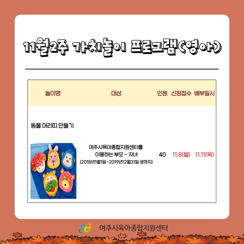 | (ºñ´ë¸é) 2021³â 11¿ù2ÁÖ °¡Ä¡³îÀÌ(¿µ¾Æ) ÇÁ·Î±×·¥ - µ¿¹°¸Ó¸®¶ì¸¸µé±â (10½Ã-11½Ã) | |||