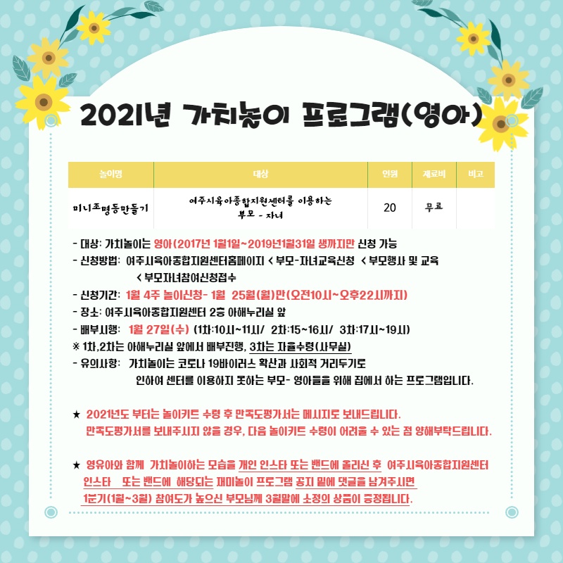 (ºñ´ë¸é) 2021³â 1¿ù4ÁÖ °¡Ä¡³îÀÌ(¿µ¾Æ) ÇÁ·Î±×·¥ - ¹Ì´ÏÁ¶¸íµî¸¸µé±â(15½Ã~16½Ã)