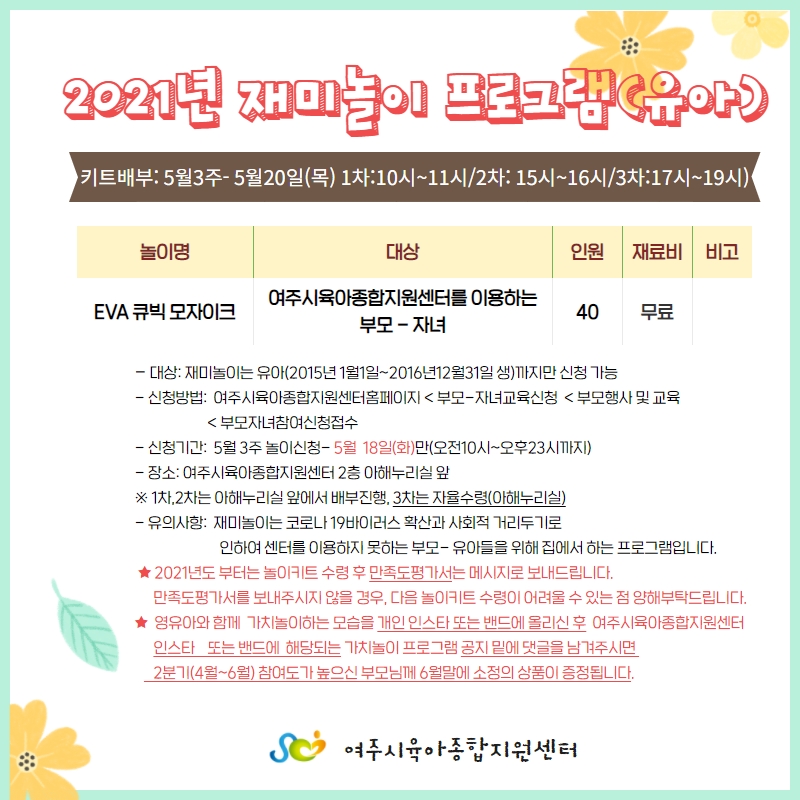 | (ºñ´ë¸é) 2021³â 5¿ù3ÁÖ Àç¹Ì³îÀÌ(À¯¾Æ) ÇÁ·Î±×·¥ - EVA Å¥ºò ¸ðÀÚÀÌÅ©(15½Ã~16½Ã) | |||