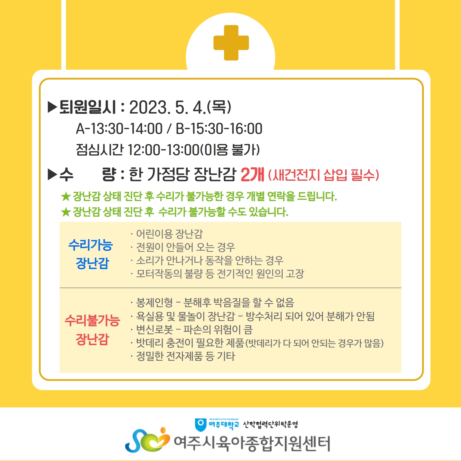 | Àå³°¨¹ßÀü¼Ò¿Í ÇÔ²² ÇÏ´Â Àå³°¨º´¿ø(B : 15:30-16:00) | |||