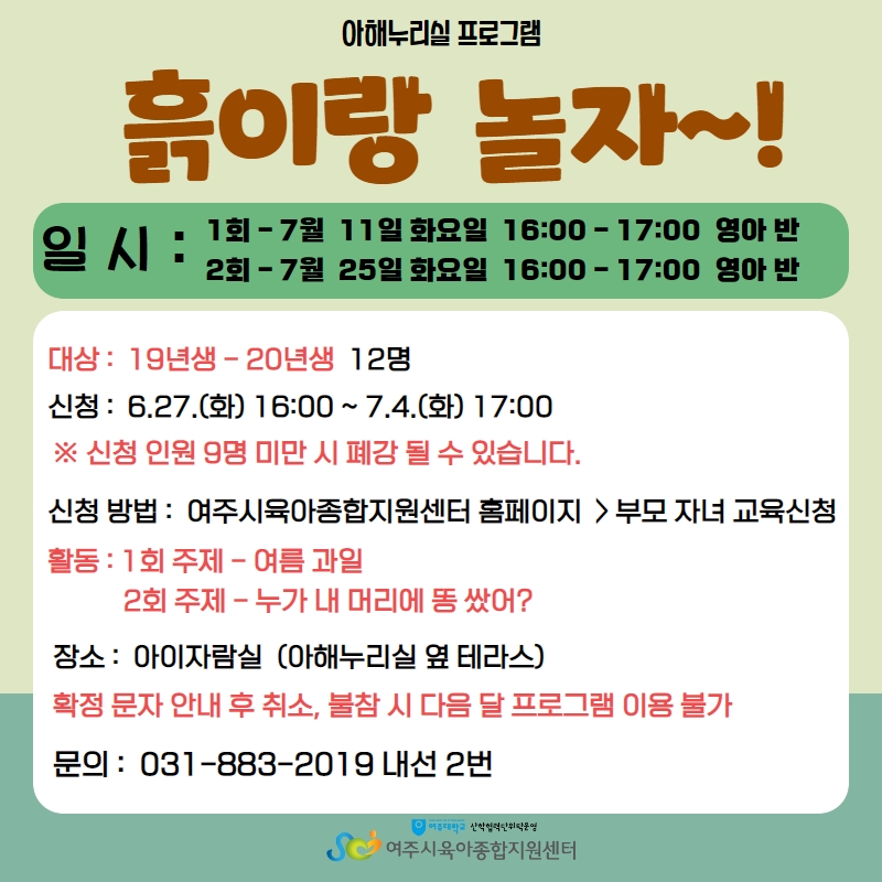 | ±âŸ»çÇ× | º» ÇÁ·Î±×·¥Àº ½ÅûÇÑ ¾ÆÀÌ¿Í º¸È£ÀÚ 1Àθ¸ Âü¼® °¡´ÉÇÕ´Ï´Ù.(º¸È£ÀÚ ÃÖ´ë 2ÀÎ) ½ÅûÀÚ ¿Ü¿£ Âü¿© ºÒ°¡ÇÕ´Ï´Ù. ½Åû È®Á¤ ¹®ÀÚ¸¦ ¼ö·ÉÇϽŠÈÄ Ãë¼Ò³ª °á¼®Àº ´ÙÀ½´Þ ÇÁ·Î±×·¥ À̿뿡 Á¦ÇÑµÉ ¼ö ÀÖÀ¸´Ï Âü°íÇØ ÁÖ½Ã±æ ¹Ù¶ø´Ï´Ù. ´ë±â·Î µî·ÏµÈ ºÐÀº ½Åû ¿Ï·áÀÚ°¡ Ãë¼Ò½Ã ´çÀÏÀÌ¶óµµ ¿¬¶ôÀ» µå¸³´Ï´Ù. |