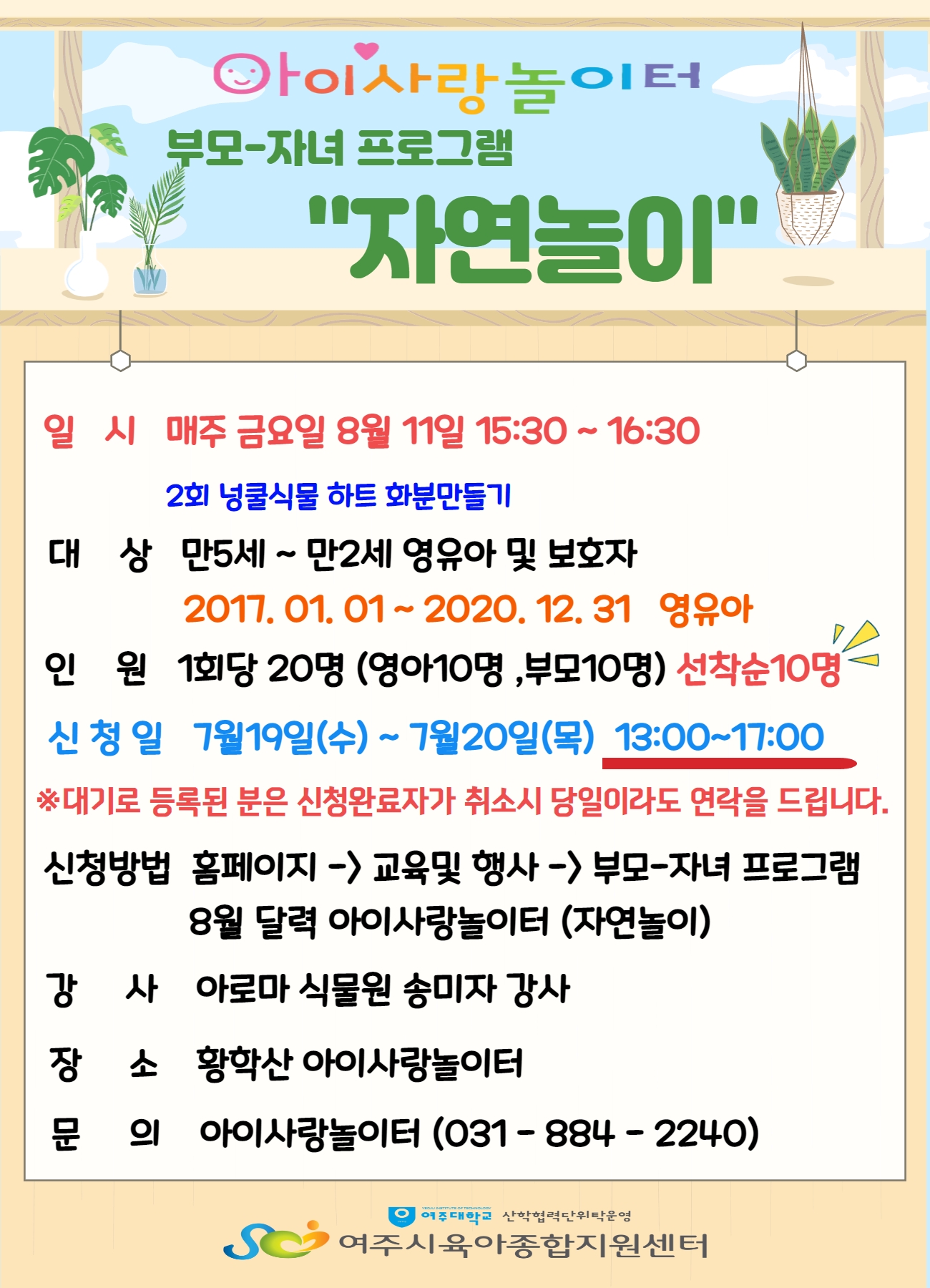 | (17~20³â»ý) ¾ÆÀÌ»ç¶û³îÀÌÅÍ ÀÚ¿¬³îÀÌ ÇÁ·Î±×·¥ (³ÕÄð½Ä¹° ÇÏÆ® ȺÐ) | |||
