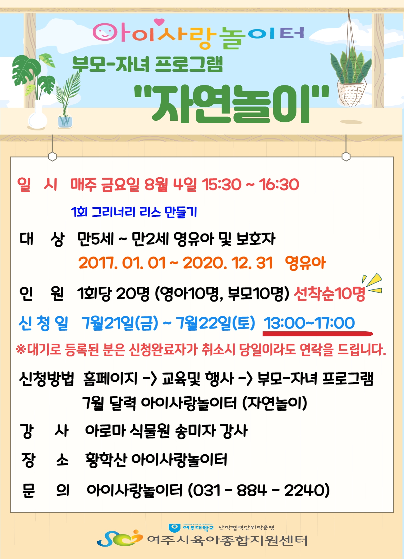| (17~20³â»ý) ¾ÆÀÌ»ç¶û³îÀÌÅÍ ÀÚ¿¬³îÀÌ (±×¸®³Ê¸® ¸®½º ¸¸µé±â) | |||