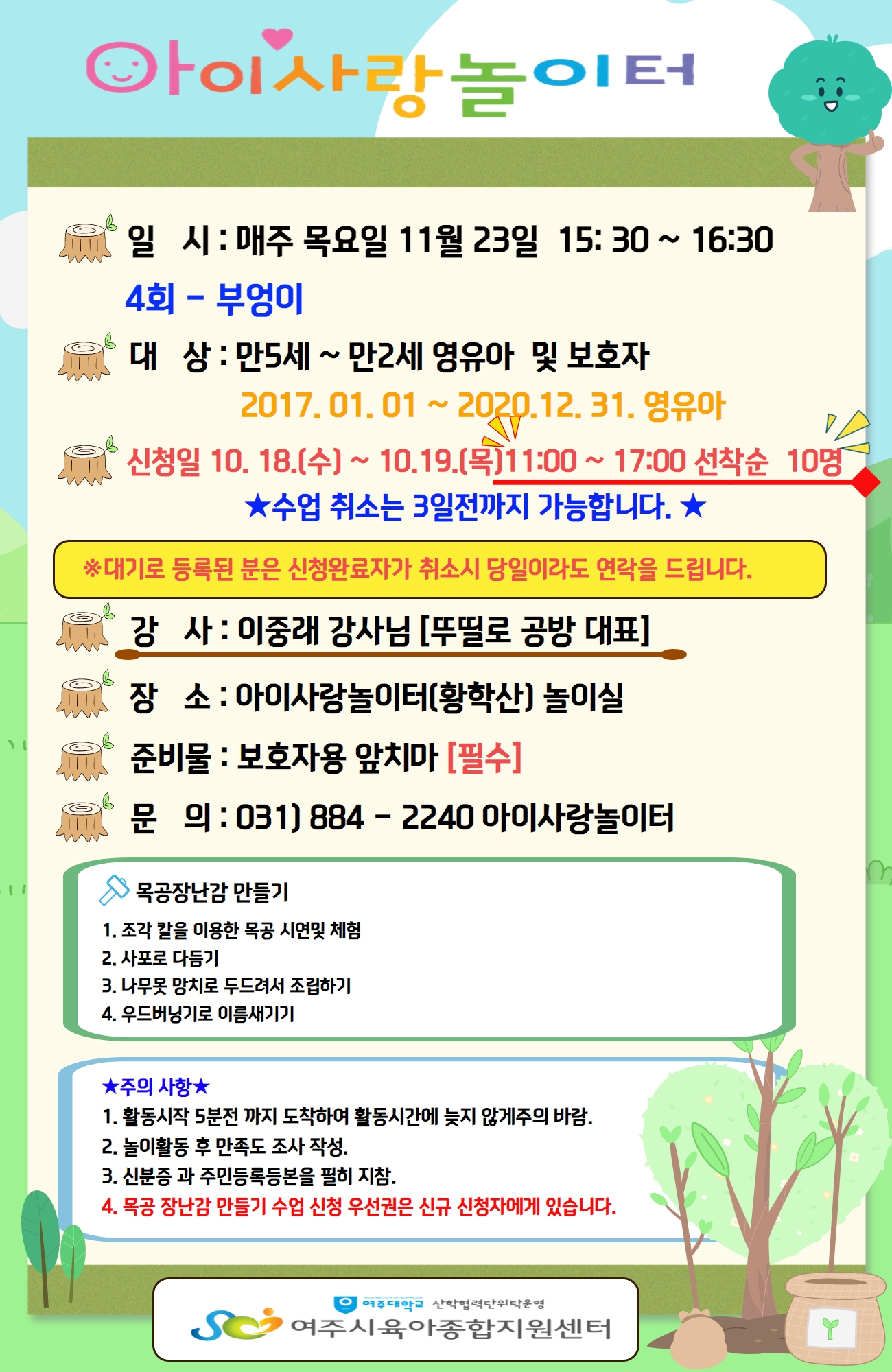 | (17~20³â»ý) ¾ÆÀÌ»ç¶û³îÀÌÅÍ ³ª¹«À̾߱â ÇÁ·Î±×·¥ (ºÎ¾ûÀÌ) | |||