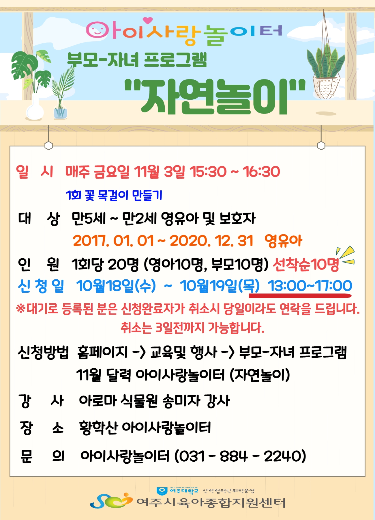 (17~20³â»ý) ¾ÆÀÌ»ç¶û³îÀÌÅÍ ÀÚ¿¬³îÀÌ ÇÁ·Î±×·¥ (²É¸ñ°ÉÀÌ)