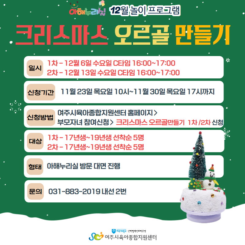 | (17~19³â»ý) ¾ÆÇØ´©¸®½Ç Å©¸®½º¸¶½º ¿À¸£°ñ ¸¸µé±â 2Â÷ | |||