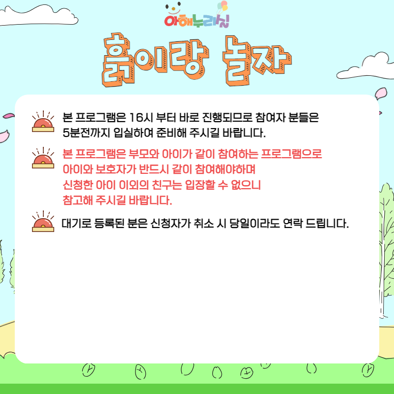 ±âŸ»çÇ× º» ÇÁ·Î±×·¥Àº ½ÅûÇÑ ¾ÆÀÌ¿Í º¸È£ÀÚ 1Àθ¸ Âü¼® °¡´ÉÇÕ´Ï´Ù.(º¸È£ÀÚ ÃÖ´ë 2ÀÎ) ½ÅûÀÚ ¿Ü¿£ Âü¿© ºÒ°¡ÇÕ´Ï´Ù.