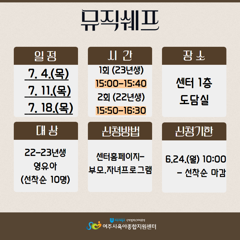 | ±âŸ»çÇ× | - ÁÖÂ÷ÀåÀÌ Çù¼ÒÇÏ´Ï 10ºÐÀü±îÁö µµÂøÇÏ¿© Ȱµ¿ ½Ã°£¿¡ ´ÊÁö ¾Êµµ·Ï ÁÖÀǹٶø´Ï´Ù. - º» ÇÁ·Î±×·¥Àº ½ÅûÇÑ ¾ÆÀÌ¿Í º¸È£ÀÚ 1Àθ¸ Âü¼®°¡´ÉÇÕ´Ï´Ù.(ÇüÁ¦,ÀڸŠÂü¿©ºÒ°¡) - ÇÁ·Î±×·¥ ´çÀÏ °á¼® ½Ã ´ÙÀ½ ´Þ ÇÁ·Î±×·¥ ½ÅûÀÌ Á¦ÇÑµÉ ¼ö ÀÖÀ¸´Ï À¯ÀÇÇØÁÖ¼¼¿ä. - °á¼® ½Ã Áõºù¼·ù¸¦ ²À ÁöÂüÇØ ÁÖ¼Å¾ß Çϸç Ãë¼Ò³ª °á¼®½Ã ´ã´çÀÚ¿¡°Ô ¿¬¶ôÁֽñ⠹ٶø´Ï´Ù. - ´ë±â·Î µî·ÏµÈ ºÐÀº ½Åû ¿Ï·áÀÚ°¡ Ãë¼Ò ½Ã ´çÀÏ ÀÌ¶óµµ ¿¬¶ôÀ» µå¸³´Ï´Ù. - ´ë±âÀÚ´Â ½Åû ¼øÀ¸·Î ¿¬¶ôµå¸®¸ç ºÎÀçÁß ½Ã ´ÙÀ½ ´ë±âÀÚ¿¡°Ô ¿¬¶ôµå¸³´Ï´Ù. |