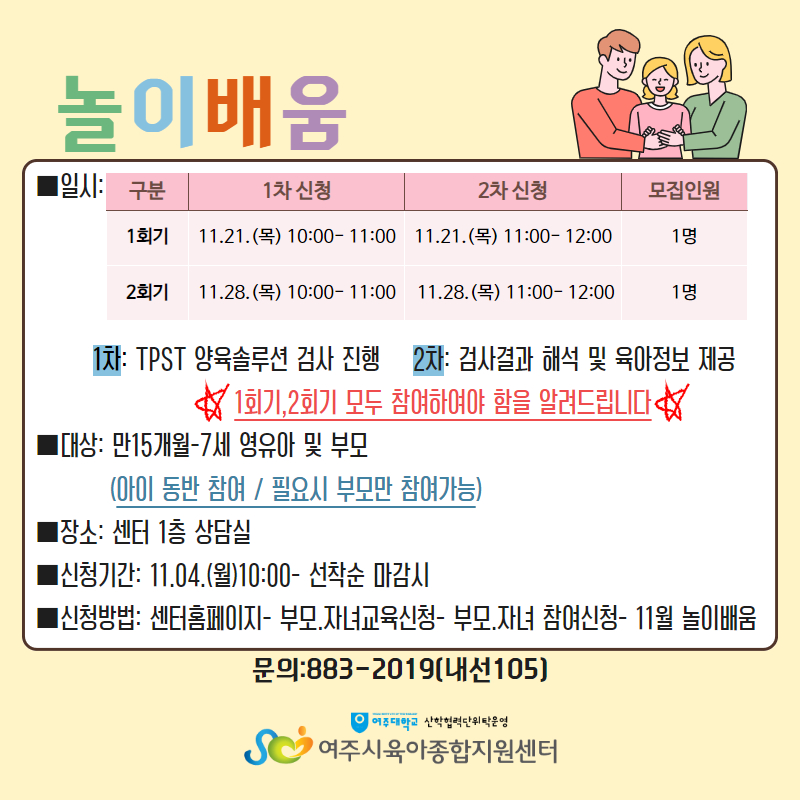 | ±âŸ»çÇ× | - 1,2ȸ±â ¸ðµÎ Âü¿©ÇØ¾ß ÇÏ´Â ÇÁ·Î±×·¥ ÀÔ´Ï´Ù. - ÀÏÁ¤ Á¶À²ÀÌ ÇÊ¿äÇÑ °æ¿ì ´ã´çÀÚ¿Í ÀÏÁ¤ Á¶À²À» ÇÒ ¼ö ÀÖ½À´Ï´Ù. |
