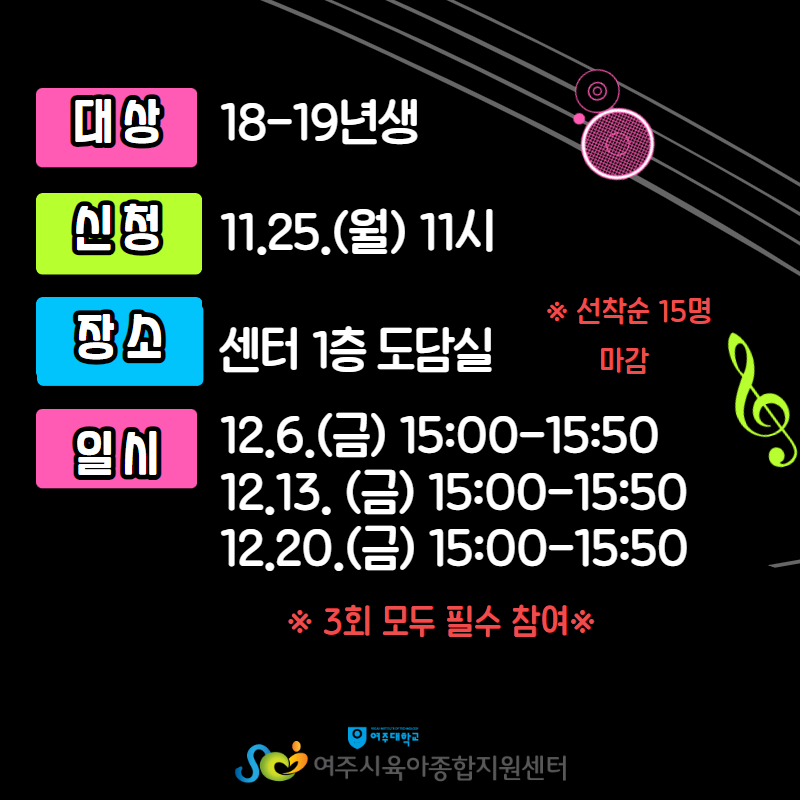 | ±³À°±â°£ | 2024-12-06(±Ý) 15½Ã00ºÐ ~ 2024-12-20(±Ý) 15½Ã50ºÐ | ||
