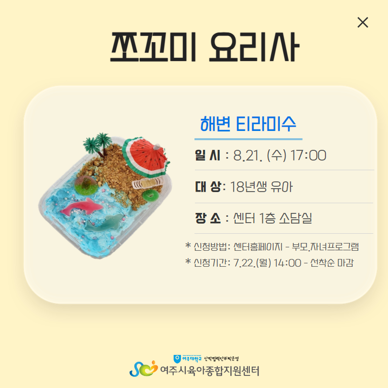 | ±âŸ»çÇ× | - ÁÖÂ÷ÀåÀÌ Çù¼ÒÇÏ¿À´Ï 10ºÐÀü±îÁö µµÂøÇÏ¿© Ȱµ¿ ½Ã°£¿¡ ´ÊÁö ¾Êµµ·Ï ÁÖÀǹٶø´Ï´Ù. - º» ÇÁ·Î±×·¥Àº ½ÅûÇÑ ¾ÆÀÌ1¸í°ú º¸È£ÀÚ 1Àθ¸ Âü¼®°¡´ÉÇÕ´Ï´Ù.(ÇüÁ¦,ÀڸŠÂü¿©ºÒ°¡) - ÇÁ·Î±×·¥ ´çÀÏ °á¼® ½Ã ÅëÇÕÆÐ³ÎÆ¼°¡ Àû¿ëµÇ´Ï À¯ÀÇÇØÁÖ¼¼¿ä(9¿ù ÇÑ´Þ °£ ¾ÆÀÌ»ç¶û ³îÀÌÅÍ& ¼¾ÅÍ ÇÁ·Î±×·¥ ÀÌ¿ëÁ¦ÇÑ) - °á¼® ½Ã Áõºù¼·ù¸¦ ²À ÁöÂüÇØ ÁÖ¼Å¾ß Çϸç Ãë¼Ò³ª °á¼®½Ã ´ã´çÀÚ¿¡°Ô ¿¬¶ôÁֽñ⠹ٶø´Ï´Ù. - ´ë±âÀÚ´Â ½Åû ¼øÀ¸·Î ¿¬¶ôµå¸®¸ç ºÎÀçÁß ½Ã ´ÙÀ½ ´ë±âÀÚ¿¡°Ô ¿¬¶ôµå¸³´Ï´Ù. |