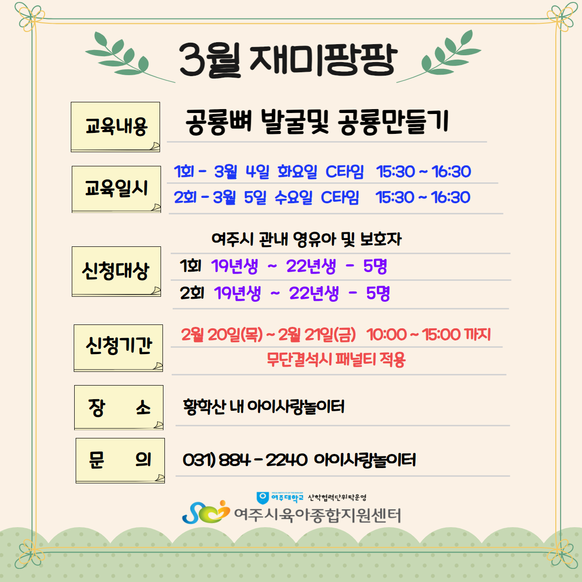 | (19~22³â»ý) Àç¹ÌÆÎÆÎ 3/5(¼ö) °ø·æ»À¹ß±¼¹× °ø·æ ¸¸µé±â | |||