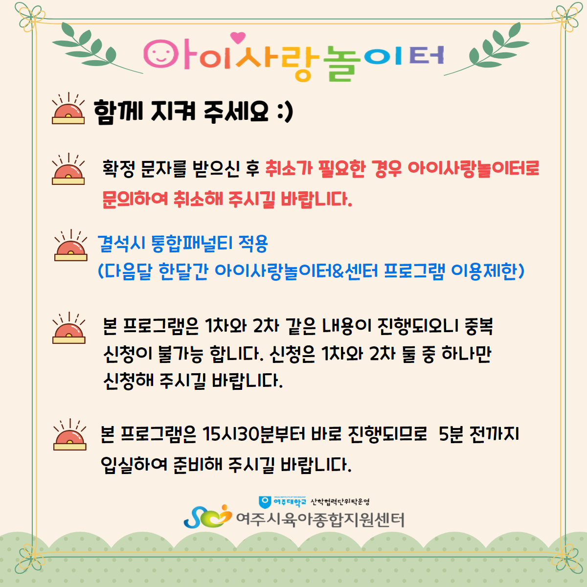 | ±âŸ»çÇ× | Áغñ¹° : 3°³¿ù ÀÌÀü µîº» Çʼö *Ãë¼Ò½Ã ¹Ýµå½Ã ÀüÈ ¿¬¶ôÀ» ÁÖ¼Å¾ß ÇÕ´Ï´Ù. * °á¼®½Ã ÅëÇÕÆÐ³ÎÆ¼ Àû¿ë (´ÙÀ½´Þ ÇÑ´Þ°£ ¾ÆÀÌ»ç¶û³îÀÌÅÍ& ¼¾ÅÍ ÇÁ·Î±×·¥ ½ÅûÁ¦ÇÑ) *½ÅûµÇ½Å ȸ¿øÀº È®Á¤ ¾È³» ¹®ÀÚ¸¦ µå¸³´Ï´Ù. *1°¡Á¤´ç ¾Æµ¿ 1¸í¸¸ ½Åû°¡´É(½ÖµÕÀÌ´Â ¿¹¿Ü ¹Ýµå½Ã º¸È£ÀÚ´Â °¢°¢ ¿À¼Å¾ß ÇÕ´Ï´Ù) ´ë±â·Î µî·ÏµÈ ºÐÀº ½Åû¿Ï·áÀÚ°¡ Ãë¼Ò½Ã ´çÀÏÀÌ¶óµµ ¿¬¶ôÀ» µå¸³´Ï´Ù. * ´ë±â½ÅûÀÚ¿¡°Ô ¿¬¶ô ÈÄ ºÎÀçÁ߽à 30ºÐÀ̳» ¿¬¶ôÀÌ ¾øÀ¸¸é ´ÙÀ½ ´ë±âÀÚ¿¡°Ô ±âȸ´Â ³Ñ¾î°¨ (´ë±âÀÚ¿¡°Ô º°µµÀÇ ¹®ÀÚ ¾È³»´Â ÇÏÁö ¾Ê½À´Ï´Ù.) |