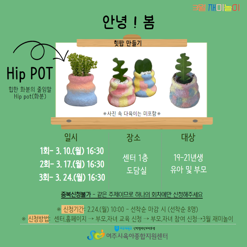 | (19-21³â»ý) Àç¹Ì³îÀÌ 3ȸ[¾È³ç!º½] 3.24.(¿ù)16:30 | |||