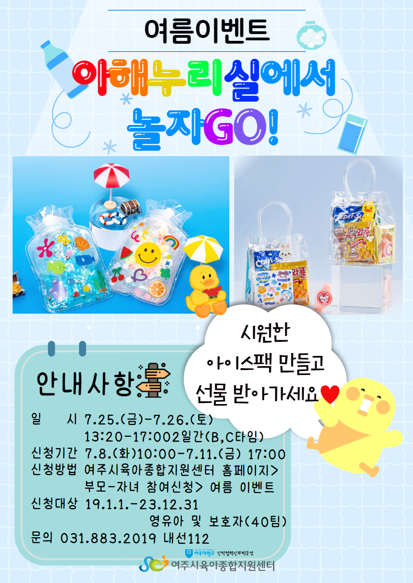 | ¿©¸§À̺¥Æ® [7.26.(Åä)¾ÆÇØ´©¸®½Ç¿¡¼ ³îÀÚGO!(B,CŸÀÓ)] | |||