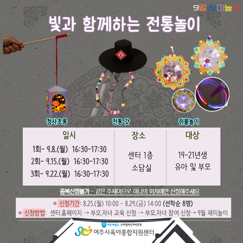 | (19-21³â»ý) Àç¹Ì³îÀÌ 1ȸ 9.8.(¿ù) 16:30 | |||