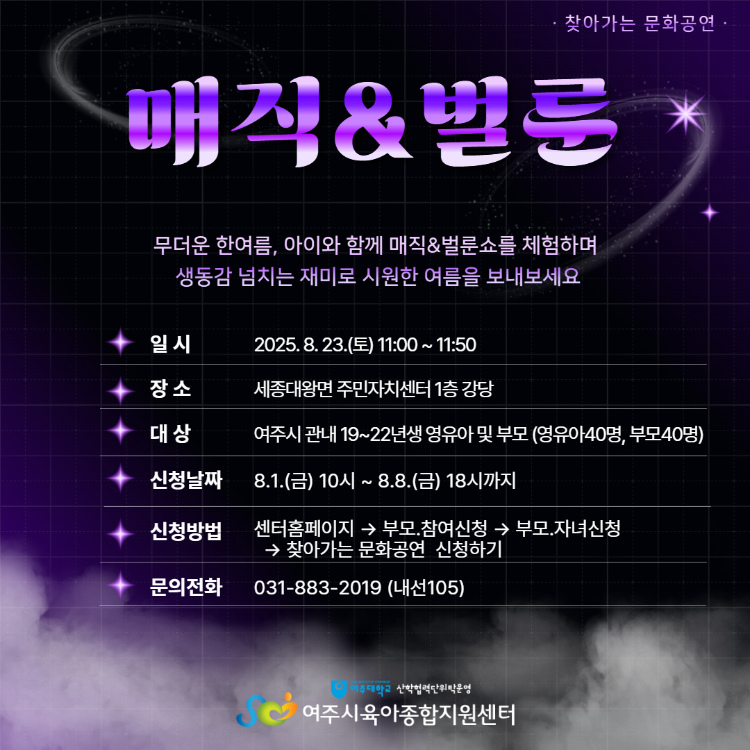 | ±âŸ»çÇ× | - °ü¶÷ Àοø¼ö È®ÀÎÀ» À§ÇØ ½ÅûÀÚÀÇ ¿¬¶ôó·Î ¹®ÀÚ°¡ ¹ß¼Û µË´Ï´Ù. ¡ÚÁؼö»çÇ×À» Àß ÁöÄÑÁÖ¼¼¿ä¡Ú - º¸È£ÀÚ´Â ÃÖ´ë 2¸í ½Åû °¡´É - ÇØ´ç ¿¬·É ½ÅûÀÚ¿Ü¿¡ ÀÔÀå ºÒ°¡/²À ÁöÄÑÁÖ¼¼¿ä! (ÇØ´ç¿¬·É¸¸ ÀÔÀå, ÃëÇÐ ÇüÁ¦, Àڸеî ÀÔÀå ºÒ°¡) - °ü¶÷10ºÐÀü¿¡´Â °ø¿¬Àå¿¡ µµÂø Çϼż, Ãâ¼® üũ ¹× ÀÚ¸® È®ÀÎ ¹Ù¶ø´Ï´Ù. - À½½Ä¹° ¹ÝÀÔ ±ÝÁö ÀÔ´Ï´Ù. |