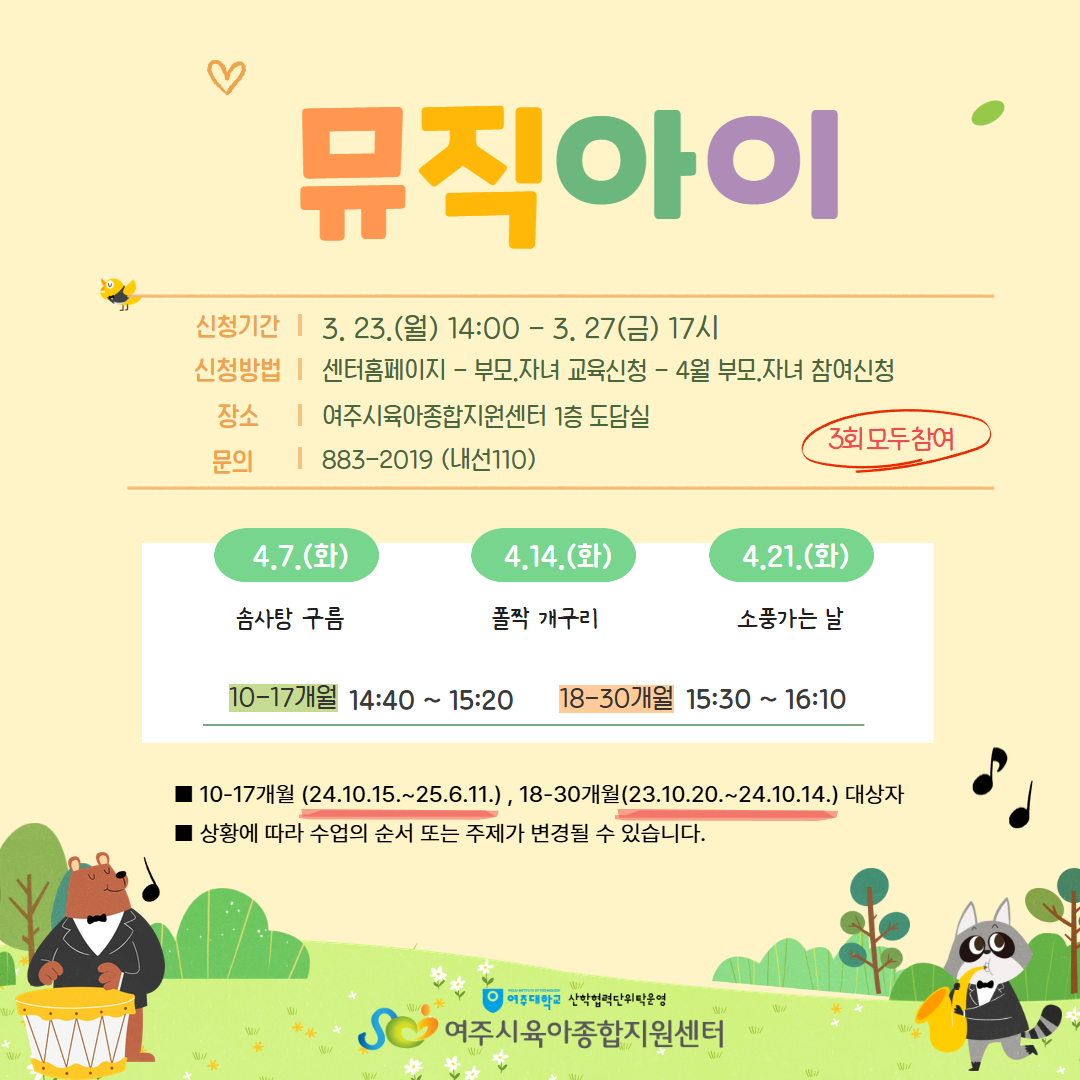 | ±âŸ»çÇ× | - ÁÖÂ÷ÀåÀÌ Çù¼ÒÇÏ¿À´Ï 5ºÐÀü±îÁö µµÂøÇÏ¿© Ȱµ¿ ½Ã°£¿¡ ´ÊÁö ¾Êµµ·Ï ÁÖÀǹٶø´Ï´Ù. - º» ÇÁ·Î±×·¥Àº ½ÅûÇÑ ¾ÆÀÌ1¸í°ú º¸È£ÀÚ 1Àθ¸ Âü¼®°¡´ÉÇÕ´Ï´Ù.(ÇüÁ¦,ÀڸŠÂü¿©ºÒ°¡) - ÇÁ·Î±×·¥ ´çÀÏ °á¼® ½Ã ÅëÇÕÆÐ³ÎÆ¼°¡ Àû¿ëµÇ´Ï À¯ÀÇÇØÁÖ¼¼¿ä (26³â 5¿ù ÇÑ´Þ °£ ¾ÆÀÌ»ç¶û ³îÀÌÅÍ& ¼¾ÅÍ ÇÁ·Î±×·¥ ½ÅûÁ¦ÇÑ) - °á¼® ½Ã Áõºù¼·ù¸¦ ²À ÁöÂüÇØ ÁÖ¼Å¾ß Çϸç Ãë¼Ò³ª °á¼®½Ã ´ã´çÀÚ¿¡°Ô ¿¬¶ôÁֽñ⠹ٶø´Ï´Ù. - ´ë±âÀÚ´Â ½Åû ¼øÀ¸·Î ¿¬¶ôµå¸®¸ç ºÎÀçÁß ½Ã ´ÙÀ½ ´ë±âÀÚ¿¡°Ô ¿¬¶ôµå¸³´Ï´Ù. - 3ȸ ¸ðµÎ Âü¼®ÇÏ¼Å¾ß ÇÕ´Ï´Ù. |