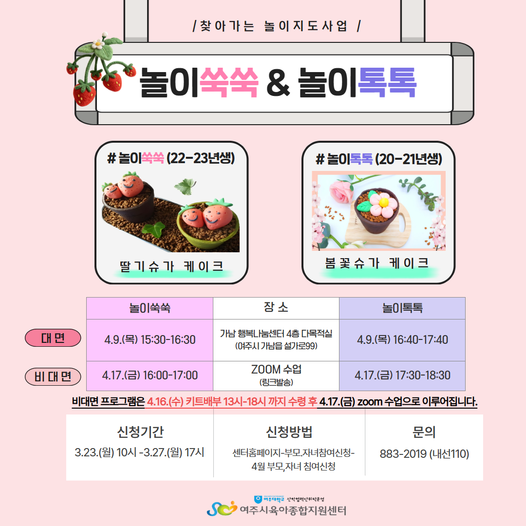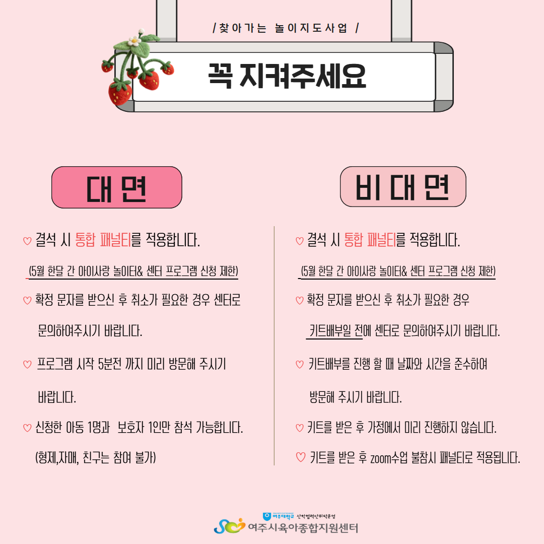 | ±âŸ»çÇ× | - Ãë¼Ò ½Ã ³îÀÌŰƮ ¹èºÎÀÏ Àü¿¡ ´ã´çÀÚ¿¡°Ô ¿¬¶ôÁֽñ⠹ٶø´Ï´Ù. - ÇÁ·Î±×·¥ ´çÀÏ °á¼® ½Ã ÅëÇÕÆÐ³ÎÆ¼°¡ Àû¿ëµÇ´Ï À¯ÀÇÇØÁÖ¼¼¿ä (26³â 5¿ù ÇÑ´Þ °£ ¾ÆÀÌ»ç¶û ³îÀÌÅÍ& ¼¾ÅÍ ÇÁ·Î±×·¥ ½ÅûÁ¦ÇÑ) - ŰƮ¹èºÎÀÏ[4.16.(¸ñ) 13:00-18:00] ½Ã°£À» ÁؼöÇÏ¿© ¹æ¹®ÇØÁֽñ⠹ٶø´Ï´Ù. - ŰƮ¹èºÎ³¯Â¥¿Í ZOOM ¼ö¾÷ ³¯Â¥¸¦ ²À! È®ÀÎÇØÁÖ¼¼¿ä. - ´ë±âÀÚ´Â ½Åû ¼øÀ¸·Î ¿¬¶ôµå¸®¸ç ºÎÀçÁß ½Ã ´ÙÀ½ ´ë±âÀÚ¿¡°Ô ¿¬¶ôµå¸³´Ï´Ù. - ŰƮ ¹ÞÀº ÈÄ °¡Á¤¿¡¼ ¹Ì¸® ÁøÇàÇÏÁö ¾Ê½À´Ï´Ù. - ŰƮ¸¸ ¹Þ°í ¼ö¾÷¿¡ Âü¿©ÇÏÁö ¾ÊÀº °¡Á¤Àº ÆÐ³ÎƼ¿¡ Àû¿ëÀÌ µË´Ï´Ù. - 4¿ù9ÀÏ(¸ñ), 4¿ù17ÀÏ(±Ý) Áߺ¹ ½Åû ºÒ°¡´ÉÇÕ´Ï´Ù. |