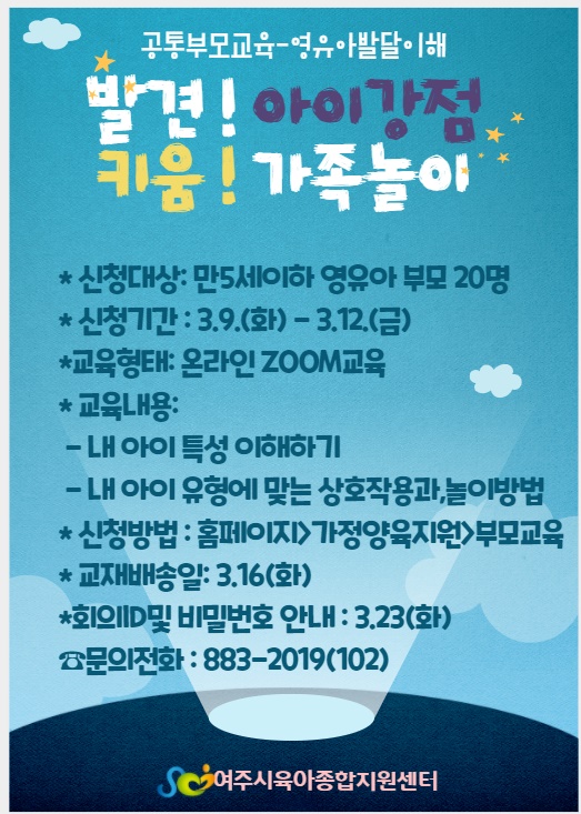 | °øÅëºÎ¸ð±³À° ¿µÀ¯¾Æ¹ß´ÞÀÌÇØ±³À° ¹ß°ß! ¾ÆÀ̰Á¡ , Ű¿ò! °¡Á·³îÀÌ (¿Â¶óÀÎ ZOOM±³À°) | |||