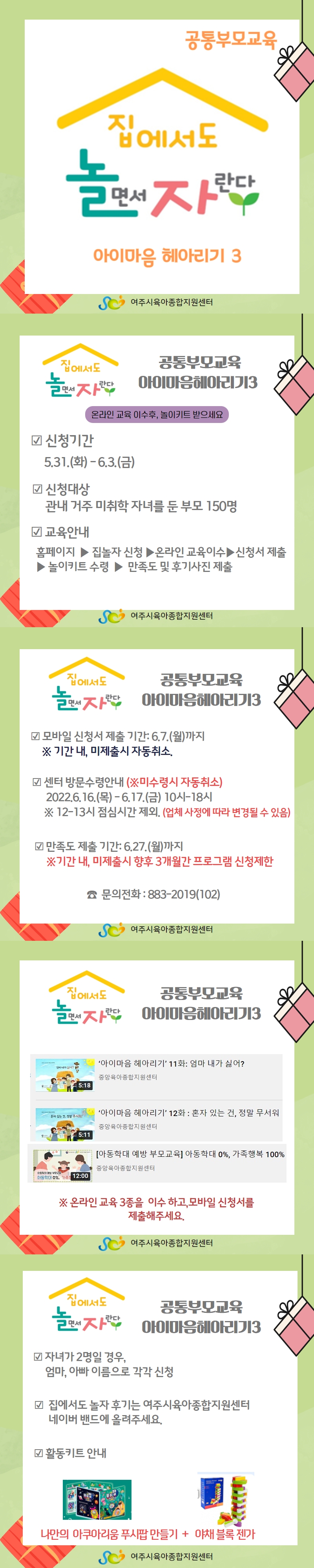 | ±âŸ»çÇ× | ¡Ø ¿Â¶óÀÎ ±³À°¿µ»ó 3Á¾ À̼ö ÈÄ, ¸ð¹ÙÀÏ ½Åû¼¸¦ Á¦ÃâÇØÁÖ¼¼¿ä. ( ¿Â¶óÀÎ ±³À°¿µ»ó ¹× ¸ð¹ÙÀÏ ½Åû¼ ¹®ÀÚ ¹ß¼ÛÀÏÀº 6.2(¸ñ) - 6.3.(±Ý)ÀÔ´Ï´Ù ) - ¿Â¶óÀÎ ±³À°¿µ»ó 1 " 11È : ¾ö¸¶ ³»°¡ ½È¾î? " - ¿Â¶óÀÎ ±³À°¿µ»ó2 " 12È: È¥ÀÚ ÀÖ´Â °Ç, Á¤¸» ¹«¼¿ö! " - ¿Â¶óÀÎ ±³À°¿µ»ó 3 " ¾Æµ¿Çдë 0%, °¡Á·Çູ 100%" |