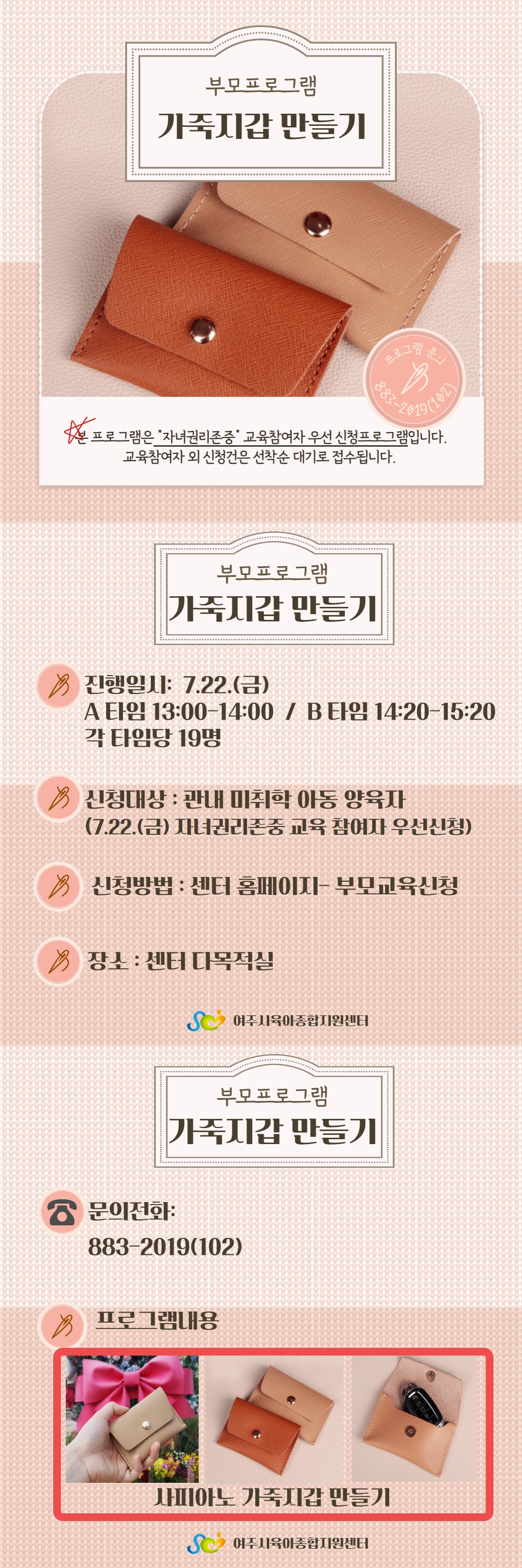 | ºÎ¸ðÇÁ·Î±×·¥-°¡Á×Áö°© ¸¸µé±â AŸÀÓ 13-14½Ã | |||