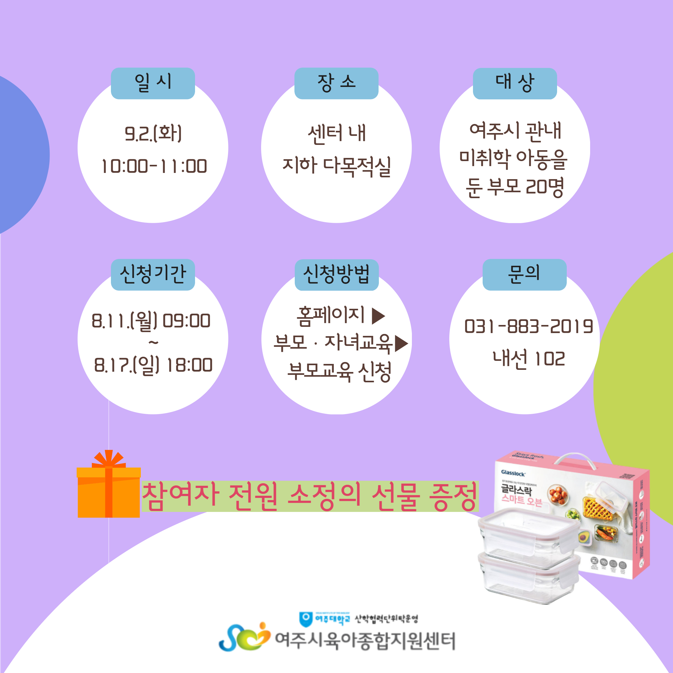 | Á¢¼ö´ë»ó | º¸À°±³Á÷¿ø, ºÎ¸ð | Á¤¿ø | 20¸í (½Åû: 22) |