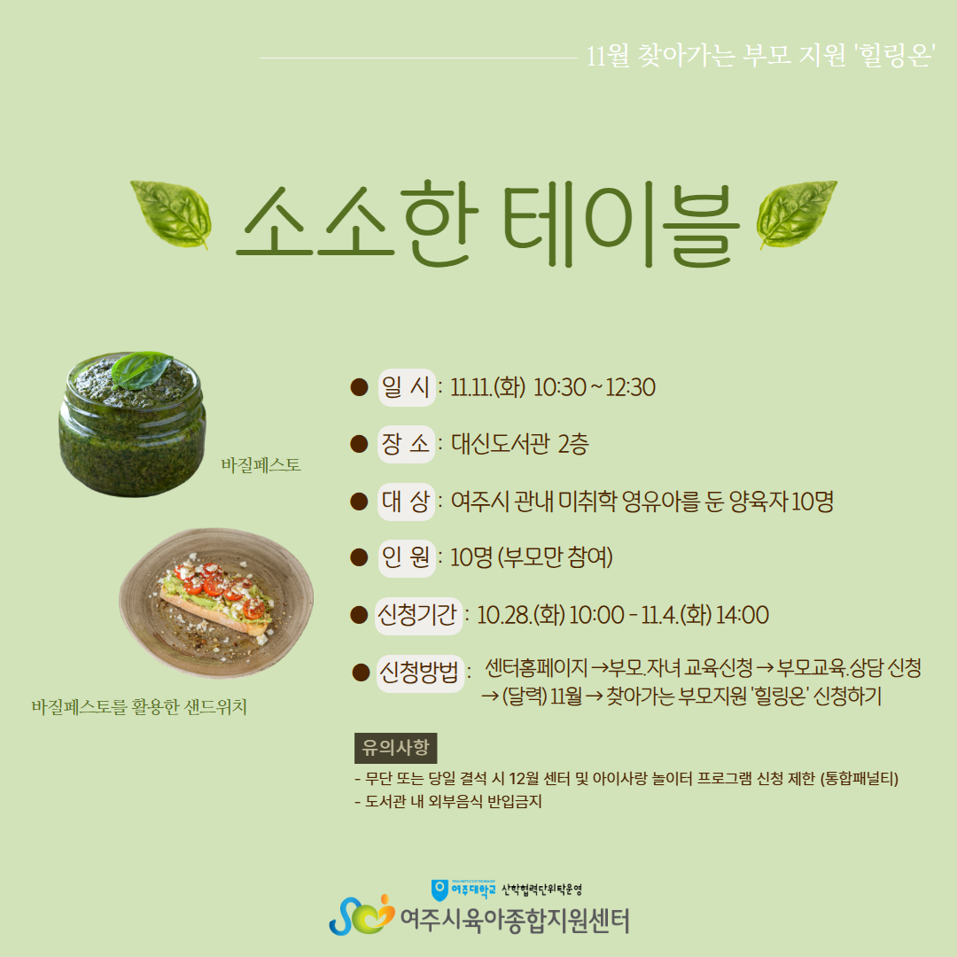 | ã¾Æ°¡´Â ºÎ¸ðÁö¿ø ÇÁ·Î±×·¥ <Èú¸µ¿Â> '¼Ò¼ÒÇÑ Å×À̺í' | |||