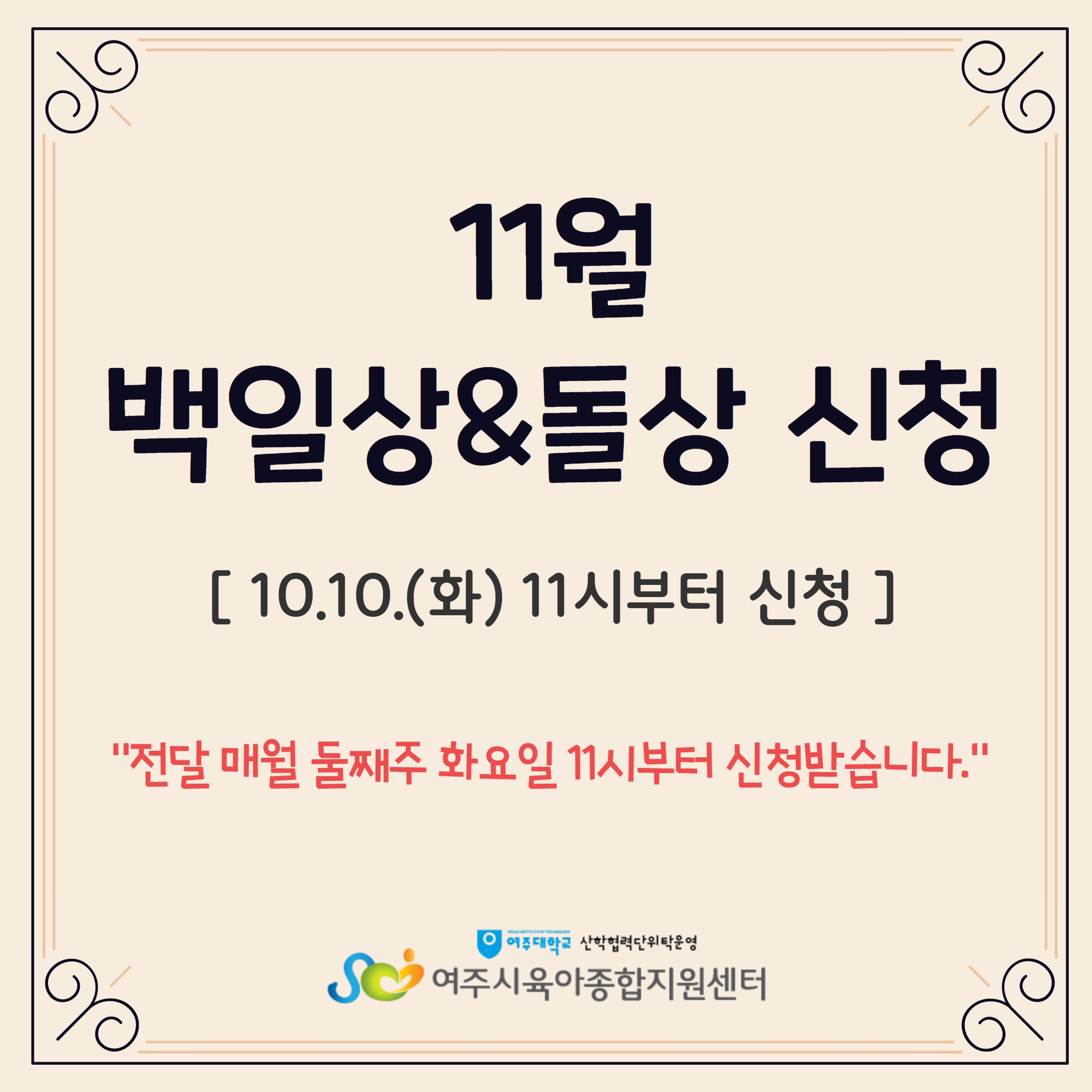 ¡Ú11¿ù ¹éÀÏ»ó&µ¹»ó ½Åû ¾È³»¡Ú