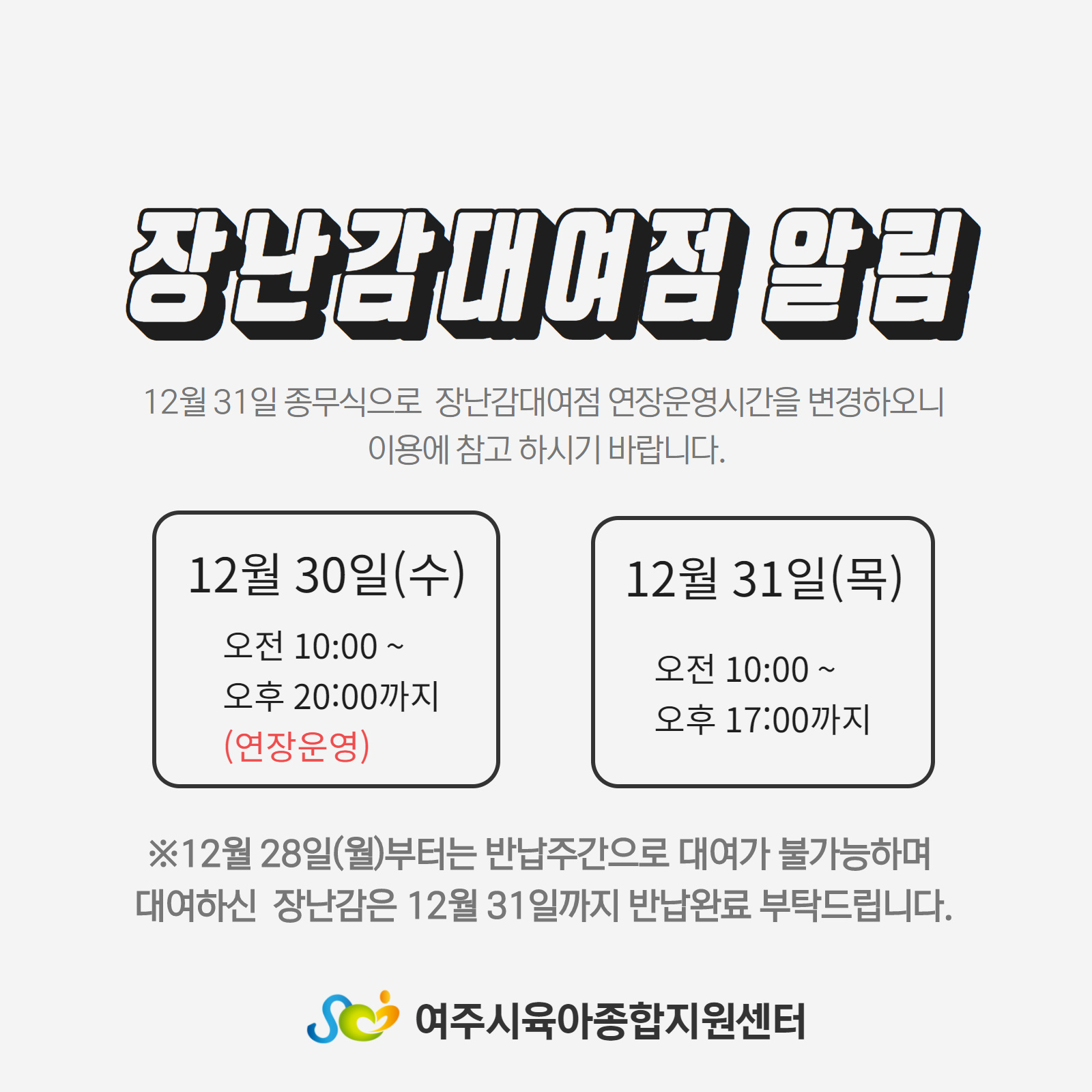¿¬Àå¿î¿µ½Ã°£ º¯°æ¾È³»[12¿ù 5ÁÖ]