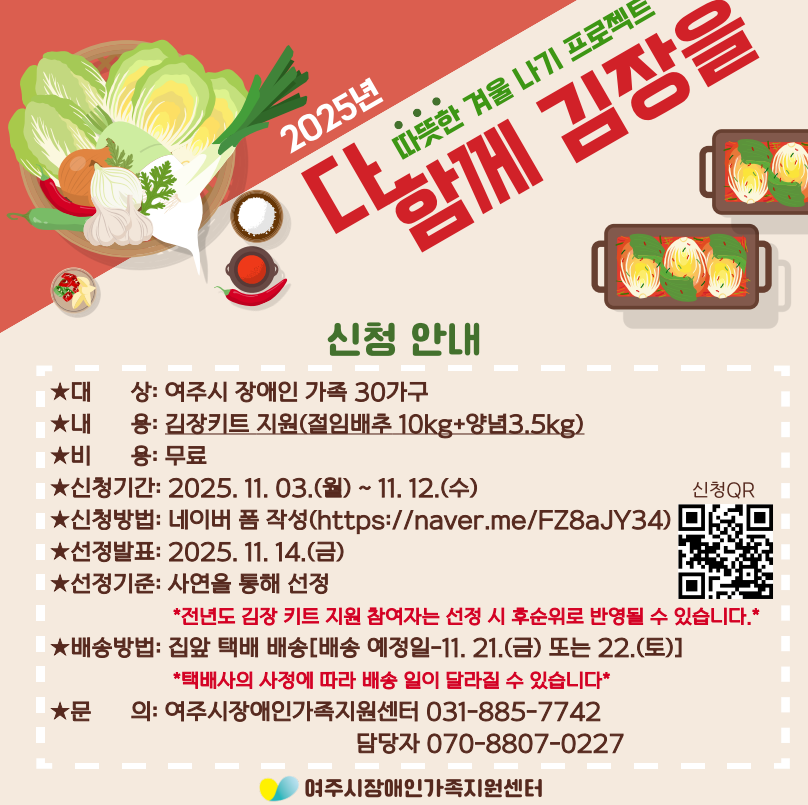 2025³â ¹®ÈȰµ¿Áö¿ø»ç¾÷ ¡¸´ÙÇÔ²² ±èÀåÀ»¡¹Âü¿©ÀÚ ¸ðÁý ¾È³» (¿©ÁÖ½ÃÀå¾ÖÀΰ¡Á·Áö¿ø¼¾ÅÍ)