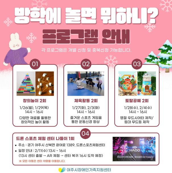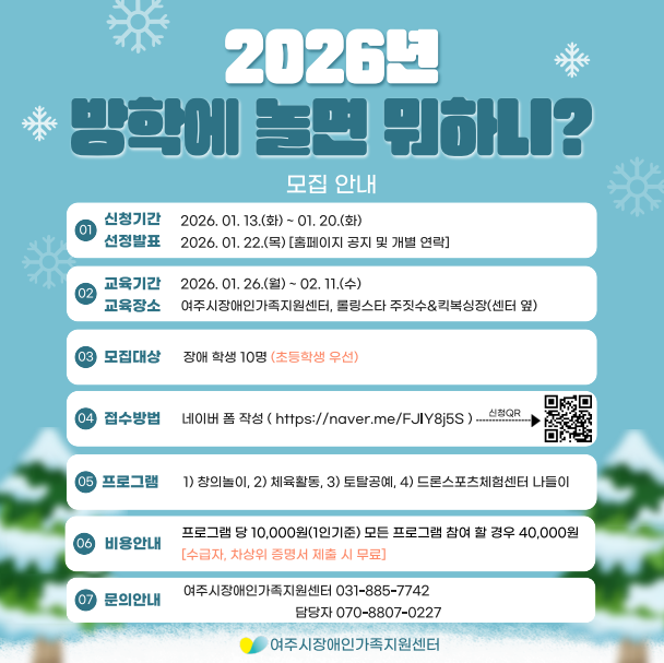 (¿©ÁÖ½ÃÀå¾ÖÀΰ¡Á·Áö¿ø¼¾ÅÍ) 2026³â Àå¾Ö ÇлýÀ» À§ÇÑ °Ü¿ï¹æÇÐ ÇÁ·Î±×·¥¡¸¹æÇп¡ ³î¸é ¹¹ÇÏ´Ï¡¹ ¾È³»