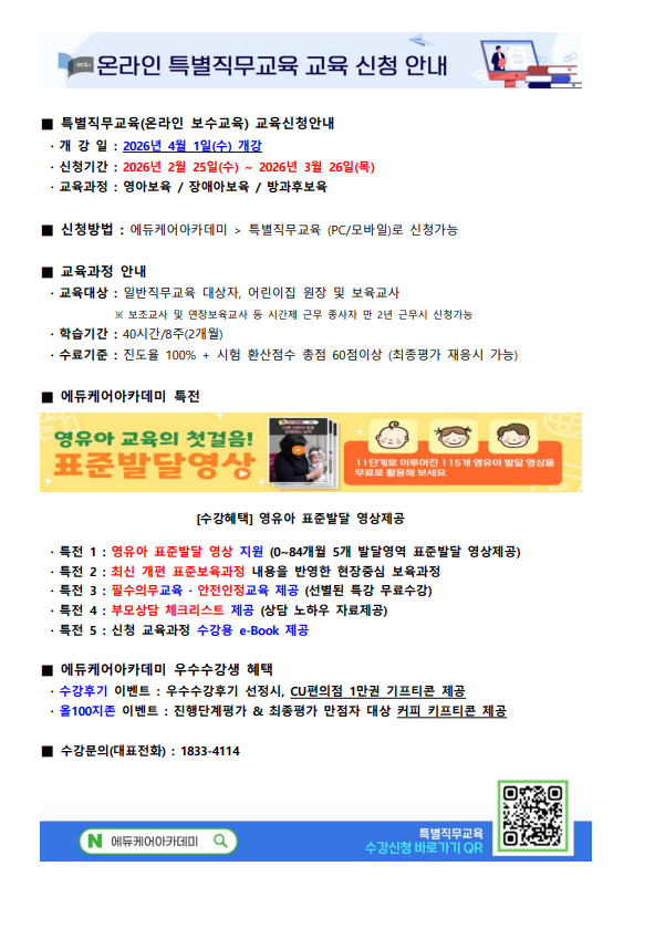 [¿¡µàÄÉ¾î¾ÆÄ«µ¥¹Ì] º¸À°±³Á÷¿ø ¿Â¶óÀΠƯº°Á÷¹«±³À° 2026³â 4¿ù °³° ±³À°½Åû¾È³»