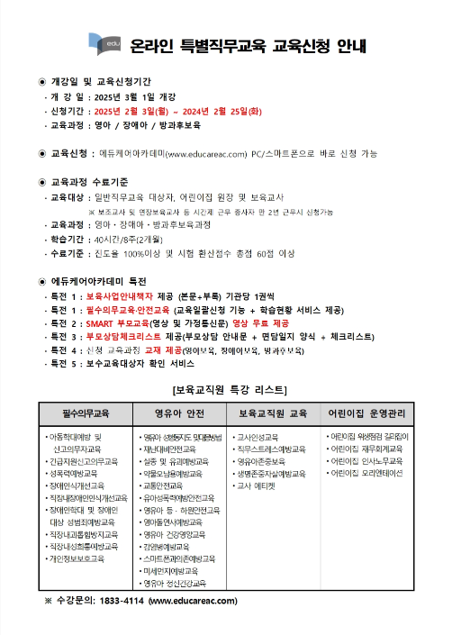 [¿¡µàÄÉ¾î¾ÆÄ«µ¥¹Ì] º¸À°±³Á÷¿ø ¿Â¶óÀΠƯº°Á÷¹«±³À° 2025³â 3¿ù °³°¹Ý ±³À°½Åû ¾È³»