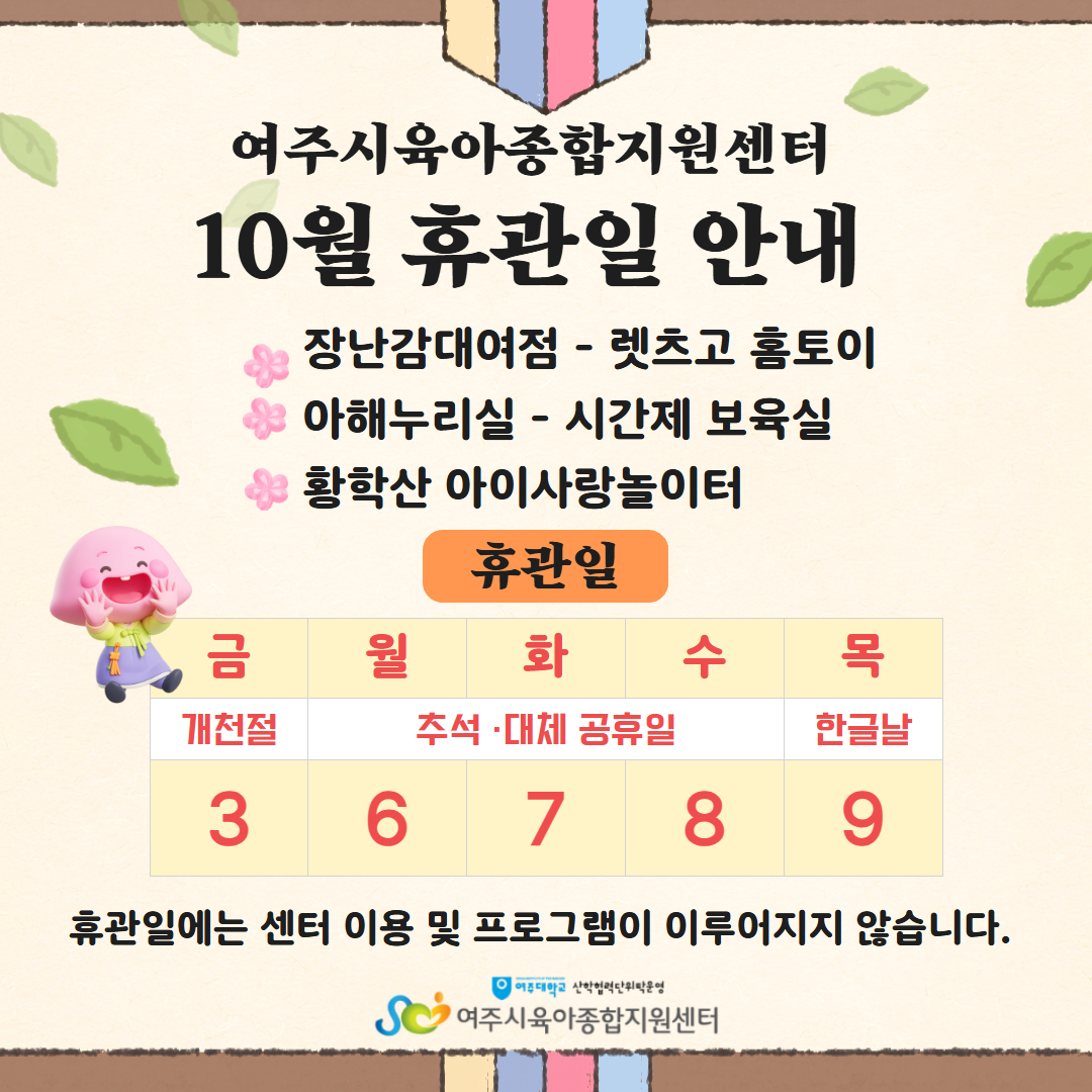 [¿î¿µ¾È³»] 10¿ù ÈÞ°üÀÏ ¾È³»