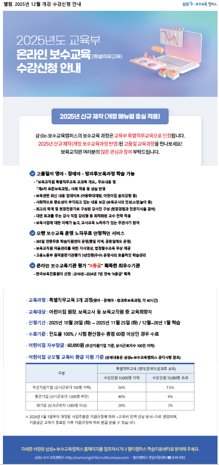 [»ï¼ºeº¸¼ö±³À°Ä·ÆÛ½º] 25³â 12¿ù°³° ¿Â¶óÀΠƯº°Á÷¹«±³À° ¼ö°½Åû ¾È³»