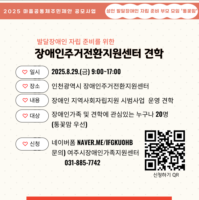 2025³â ¹ß´ÞÀå¾ÖÀÎ ÀÚ¸³Áغñ¸¦ À§ÇÑ¡¸Àå¾ÖÀÎÁÖ°ÅÀüȯÁö¿ø¼¾ÅÍ °ßÇС¹Âü°¡ÀÚ ¸ðÁý ¾È³» (¿©ÁÖ½ÃÀå¾ÖÀΰ¡Á·Áö¿ø¼¾ÅÍ)