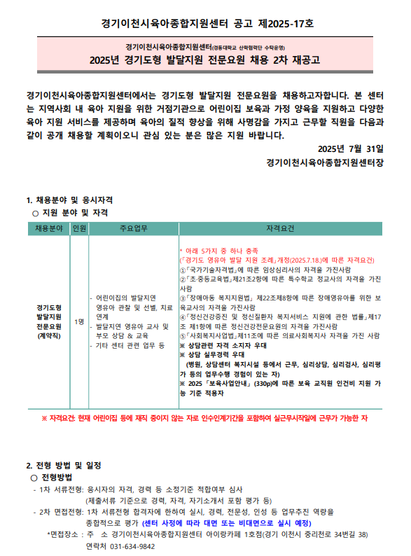 °ø°í Á¦2025-17È£_°æ±âÀÌõ½ÃÀ°¾ÆÁ¾ÇÕÁö¿ø¼¾ÅÍ_°æ±âµµÇü¹ß´ÞÁö¿øÀü¹®¿ä¿ø_ä¿ë 2Â÷ Àç°ø°í.pdf