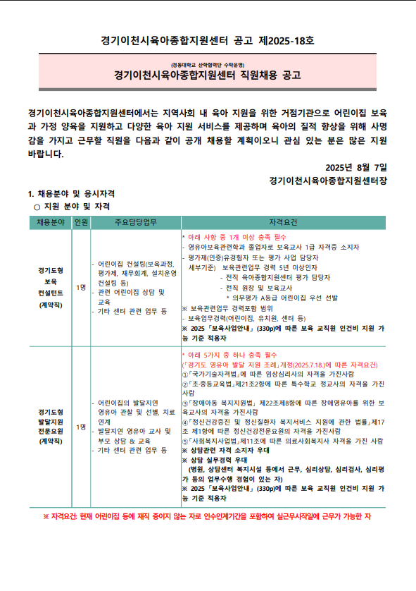 [ÀÌõ½ÃÀ°¾ÆÁ¾ÇÕÁö¿ø¼¾ÅÍ]°æ±âÀÌõ½ÃÀ°¾ÆÁ¾ÇÕÁö¿ø¼¾ÅÍ Á÷¿øÃ¤¿ë ¾È³»