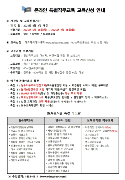[¿¡µàÄÉ¾î¾ÆÄ«µ¥¹Ì] º¸À°±³Á÷¿ø ¿Â¶óÀΠƯº°Á÷¹«±³À° 2025³â8¿ù °³° ±³À°½Åû ¾È³»