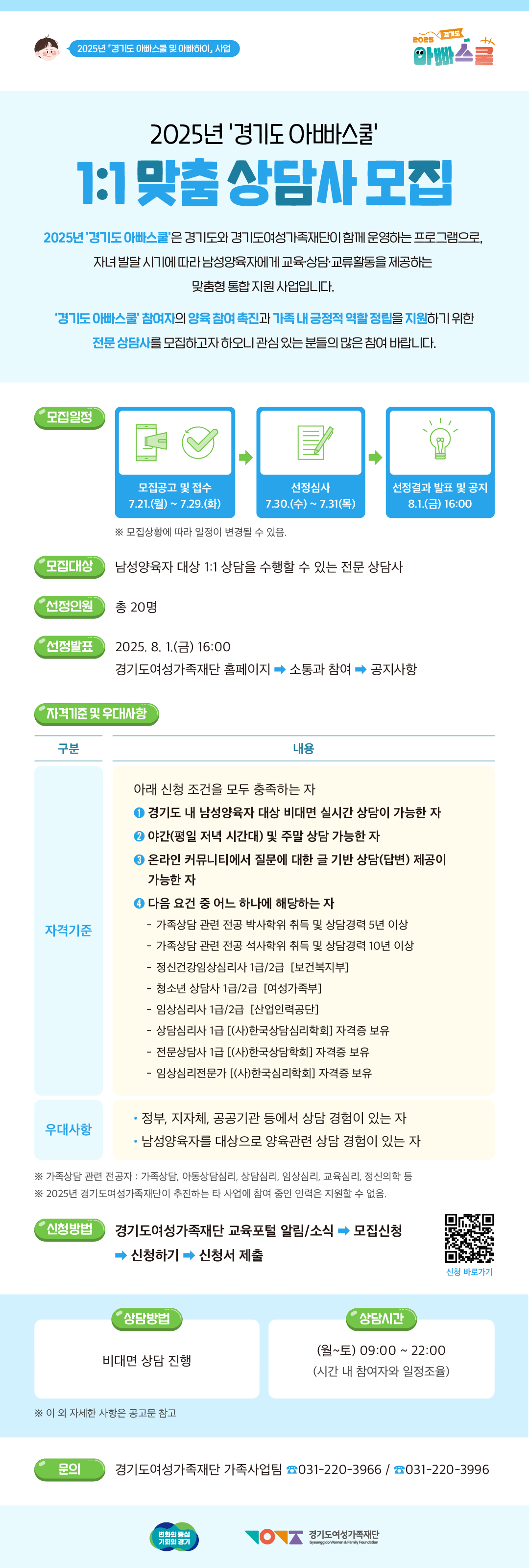 £Û°æ±âµµ¿©¼º°¡Á·Àç´Ü£Ý2025³â '°æ±âµµ ¾Æºü½ºÄð' 1:1 ¸ÂÃã »ó´ã»ç ¸ðÁý ¾È³»