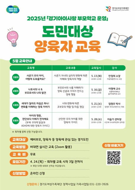 2025³â¡¸°æ±â¾ÆÀÌ»ç¶û ºÎ¸ðÇб³ ¿î¿µ¡¹5¿ù µµ¹Î´ë»ó ¾çÀ°ÀÚ ±³À° Âü¿©ÀÚ ¸ðÁý[°æ±âµµ¿©¼º°¡Á·Àç´Ü]