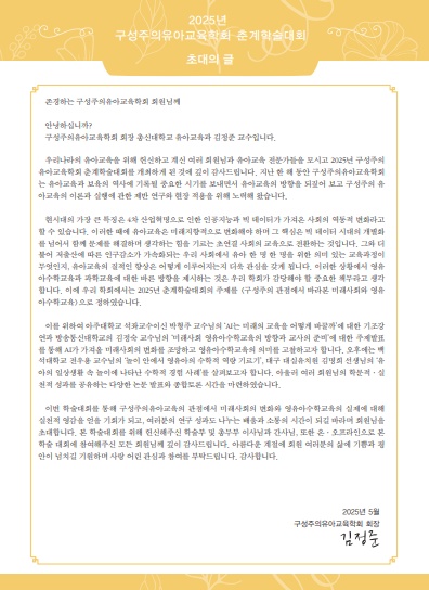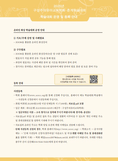 | <2025³â ±¸¼ºÁÖÀÇÀ¯¾Æ±³À°ÇÐȸ Ãá°èÇмú´ëȸ »çÀüµî·Ï ½Åû ¾È³»> | |||||