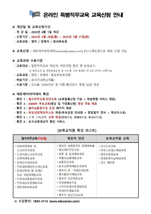 [¿¡µàÄÉ¾î¾ÆÄ«µ¥¹Ì] º¸À°±³Á÷¿ø ¿Â¶óÀΠƯº°Á÷¹«±³À° 2025³â 6¿ù °³° ±³À°½Åû ¾È³»