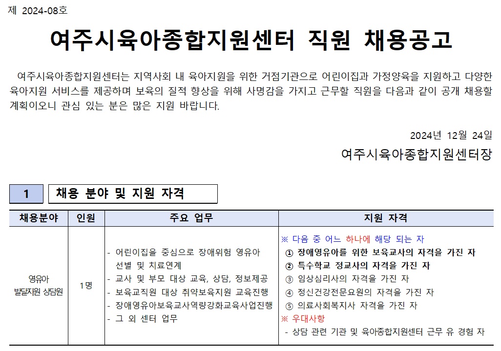 Á¦ 2024-08È£ ¿©ÁÖ½ÃÀ°¾ÆÁ¾ÇÕÁö¿ø¼¾ÅÍ [¿µÀ¯¾Æ¹ß´ÞÁö¿ø»ó´ã¿ø] ä¿ë Àç°ø°í¹®